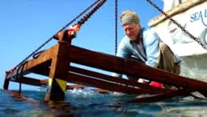 La desvencijada gavia preanuncia un desastre y así es, efectivamente: se rompe el cable y tocan fondo a 47 metros de profundidad. Ahí empieza la carrera contra el tiempo por la falta de aire y el peligro que representan los escualos. Habría que agregar una serie de efectos que produce la presión bajo el agua, pero que aquí se toman poco en cuenta.