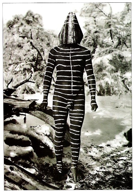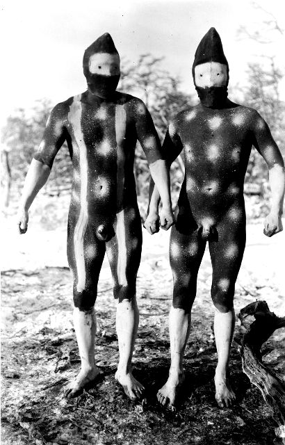A diferencia de sus contemporáneos, Gusinde fotografía el cuerpo en sus manifestaciones más extraordinarias, adornados con plumas y tocados de corteza de árbol, con pieles de guanaco y cubiertos de pinturas rituales. Fotografiados en un entorno azotado por fuertes vientos, lluvias o cubiertos de nieve, en medio de una naturaleza descrita por Darwin como dura e inhóspita, enmarcados en actitudes codificadas por el rito, estos pueblos del fin del mundo son el testimonio de una sociedad en su fase crepuscular.