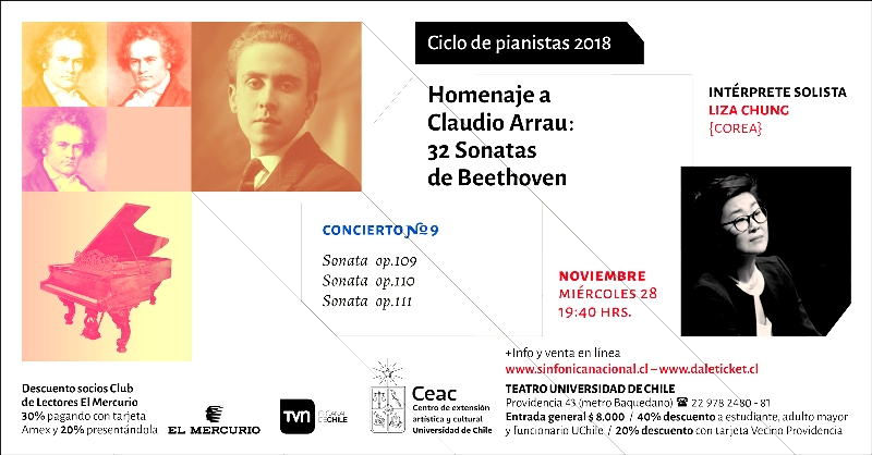 Dedicado a la figura del maestro Claudio Arrau, la temporada ha repasado integral y cronológicamente las 32 Sonatas de Beethoven. Acerca de su participación, Chung comenta que “para mí es un gran honor y privilegio ser parte de tan tremendo ciclo, en especial terminarlo con las últimas tres sonatas”.
