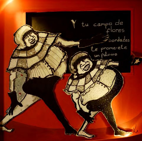 A partir de esto, nace su actual trabajo visual, que conjuga la experiencia escénica y la ilustración, en una colección de obras que se exponen en esta muestra.