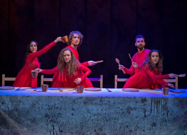Los bailarines utilizan diferentes materialidades y objetos como espejos, figuras geométricas, caballos, entre otros, para dar vida e interpretar su vida y obra.