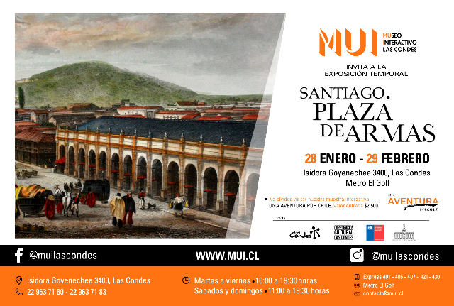 SANTIAGO (Chile), 01 de Febrero — 2020.-  El Museo Interactivo de Las Condes (MUI) y el Museo Histórico Nacional se unen en la exposición SANTIAGO. PLAZA DE ARMAS, donde se exhiben, de manera gratuita y hasta el 29 de febrero, diversas fotografías, grabados y pinturas que dan cuenta de la evolución de este emblemático espacio desde sus inicios a nuestros días.