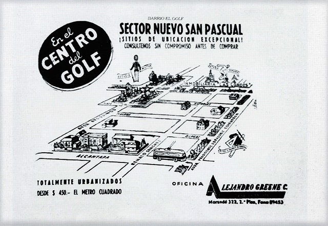 En 1930, Santiago se extendía hacia el norte del Canal San Carlos. Las Condes se había creado como comuna rural en 1901 y en 1937 se efectuó un primer plan regulador que buscaba asemejarse a una “ciudad jardín” y diferenciarse así del resto de la capital.