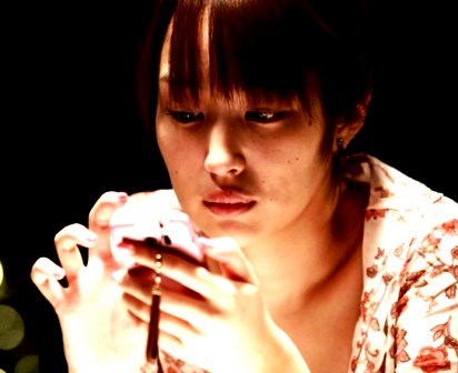 Quiero sólo recordar la primera secuencia, que me parece de antología. En el bar de citas, se ve un trío que conversa y una voz femenina que afirma que no miente. Pero en un plano más cercano hay una joven sentada a una mesa, que mira a la cámara haciendo gestos y que distraen al espectador de lo que pasa atrás. En un cierto momento, ésta se levanta y viene a sentarse en el primer plano. Entonces, se ve una mesa en la que está hablando Akiko con su celular. Todo un engaño magistral, como es un engaño la doble vida de la protagonista.