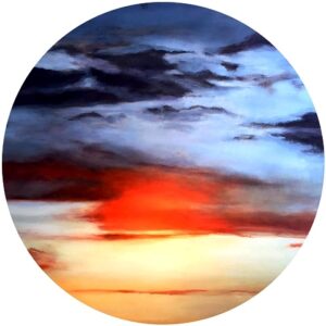 “Mi proceso creativo se inicia en aquello que el cielo nos regala a todos, y que a mí me sorprende y conmueve de modo especial. Como resultado, a veces las formas nubosas son evidentes. En otras ocasiones sólo ceden protagonismo al color”, expresa. Es decir, las pinturas nacen desde el “levantar la mirada” y contemplar, admirar.