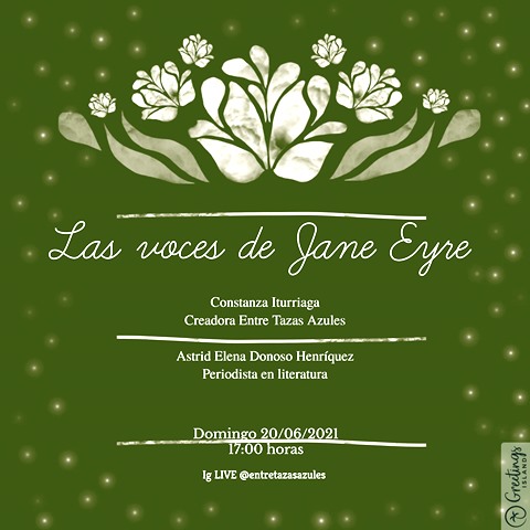 SANTIAGO (Chile), 18 de Junio — 2021.- Dialogar en torno a la fundamental novela “Jane Eyre”, publicada por la escritora inglesa Charlotte Brontë, en 1847, es la invitación del nuevo Instagram Live de @entretazasazules. Bajo el nombre LAS VOCES DE JANE EYRE, este domingo 20 de junio, a las 17:00 horas, la periodista Constanza Iturriaga, creadora de la cuenta literaria, conversará con Astrid Donoso Henríquez, periodista y diplomada en Edición y Literatura en Lengua Inglesa.