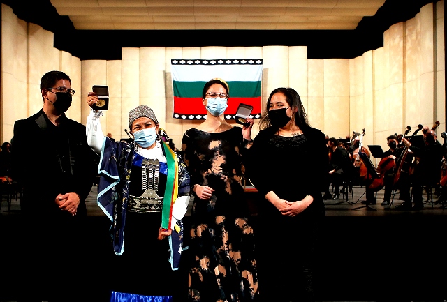 Tras la presentación artística, el concertino del conjunto, Héctor Viveros, y la violinista Fernanda Prieto, hicieron entrega de una medalla conmemorativa de los 80 años de la Orquesta, tanto a la presidenta de la Convención como a la alcaldesa Hassler, quien luego del acto manifestó estar muy contenta y “realmente feliz de este momento histórico que estamos viviendo y de que el Teatro Municipal, las Artes, las Culturas, puedan ser parte de potenciar esta posibilidad de transformación tan grande para el país. Hoy día hemos tenido una obra maravillosa, ‘Tierra Sagrada’, que habla también de este nuevo momento en que los pueblos originarios son parte principal del desarrollo”.