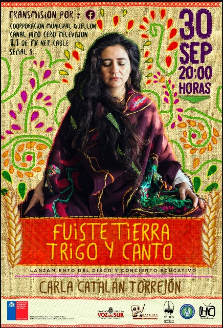 QUELLÓN (Chile), 28 de Septiembre — 2021.–   Este martes 28 de septiembre, a las 19:00 horas, será el lanzamiento oficial del disco “Fuiste tierra, trigo y canto”, de la cantora popular, intérprete de guitarra traspuesta, recopiladora, compositora y profesora de música, Carla Catalán.