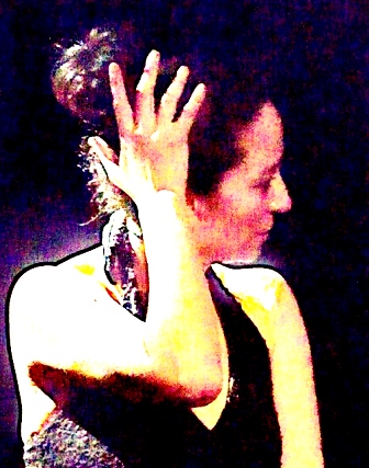 En “Ella, nosotras y yo” abandona la desnudez y la pintura corporal característicos del butoh, para usar un vestido negro, elegante, además de retomar la palabra.