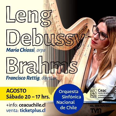 La destacada solista de la orquesta, María Chiossi, estará a cargo de interpretar Danzas Sacra y Profana de Debussy, en un programa que contará también con Preludio N°2 del compositor chileno Alfonso Leng, y la Sinfonía N°1 de Brahms…