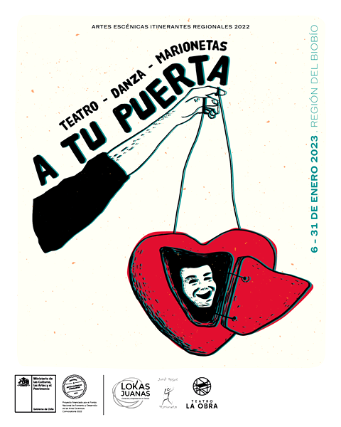 Gestado por Teatro La Obra y en asociatividad con Jordi Regot Marionetas y la Plataforma de Creación en Danza Lokas Juanas, el proyecto desplegará durante todo enero once funciones gratuitas en once espacios culturales de distintas comunas de la Región del Biobío… Panoramas gratuitos y para público familiar… “Teatro, danza y marionetas a tu puerta” es uno de los 26 proyectos financiados por el Fondo de las Artes Escénicas Itinerantes Regionales 2022, del Ministerio de las Culturas, las Artes y el Patrimonio…