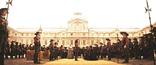 En cuarto lugar, el realismo a lo Pier Paolo Pasolini de la puesta en escena. Es una película en la que se huele la suciedad del ambiente y de personas que no saben lo que es el aseo personal. Mientras de los mosqueteros (que ni siquiera tienen un uniforme distintivo), se puede adivinar el mal olor a sudor y genitales, los nobles con sus amplios vestidos y pelucas contrarrestan seguramente con perfumes los efluvios personales. No hay que olvidar que hacían sus necesidades en cualquier rincón del palacio. Sólo Constance transmite la imagen de una mujer limpia y no creo que sea una coincidencia, puesto que es una de las pocas personas confiables y decentes de la trama.