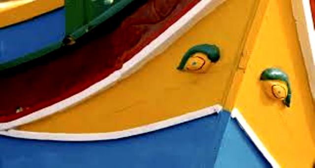 Pintada de rojo, amarillo, azul y verde, tiene en la proa dos ojos que —en el film— escrutan al espectador, el que refleja en ellos el sentimiento que le embarga por el destino ineluctable de su dueño.