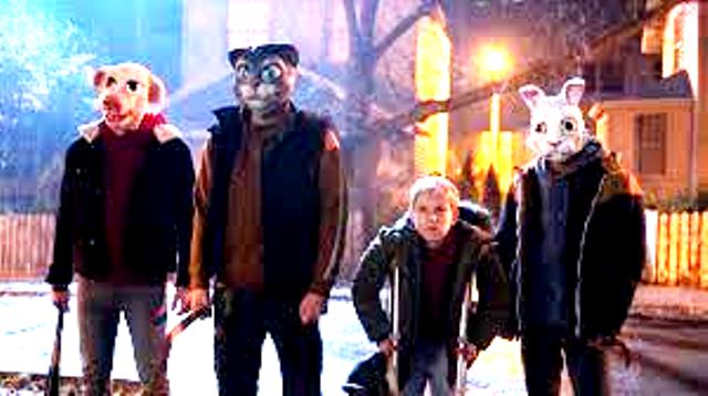Todo se prepara para un desastre y me parece que, si hay influencia de Poe, se encuentra en esta frase: “El demonio del mal es uno de los primeros instintos del ser humano” (parafraseada de El demonio de la perversidad / The Imp of the Perverse, “Graham’s Magazine”, 1845). Porque, siguiendo un viejo axioma de Hollywood, a menos que el protagonista sea un santo, el Mal se combate con el Mal. Y ello se ve claramente aquí en la secuencia de Halloween con invasores al estilo de Los extraños (The Strangers, de Bryan Bertino; 2008) o La noche de la expiación (The Purge, de James DeMonaco, 2013).