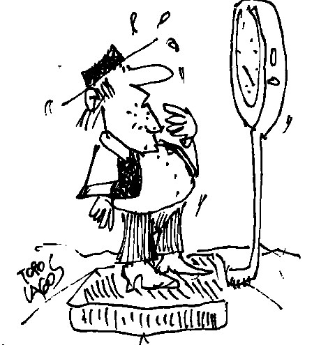 Los cometidos en Fiestas Patrias por los y las sibaritas que se lo comieron todo (incluso las empanadas de plástico de muestra), y se tomaron hasta el “vino bigoteado” de otros y que al pesarse en la balanza vieron el resultado: están más sobregirados que en el Banco en su peso y bien desbalanceada su “guatita”, al observar con espanto su voluminosa dimensión alcanzada… Su único consuelo es que “lo comido, lo tomado y lo bailado, no se los quita nadie”. Y, claro, juran de cubito abdominal que mañana comienzan la dieta para bajar esos kilitos pecadores…