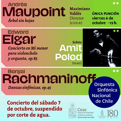 El programa contempla también Árbol sin hojas, del chileno Andrés Maupoint, quien pertenece a una generación de compositores formados por el maestro Cirilo Vila. La obra, que se presenta meditativa, fue escrita en 1989 y será la encargada de abrir el concierto.