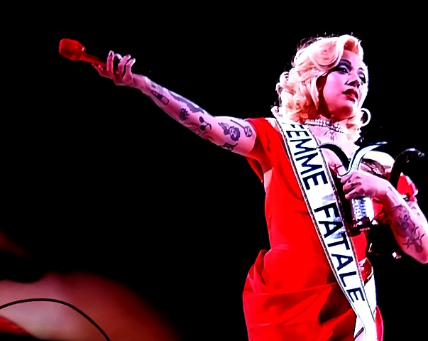 Presentó temas nuevos, combinados con sus canciones ya conocidas, exhibiendo su talento vocal y dramático, escenificando la figura de la “femme fatale”. Así, con voz y actitud, expresó su emotividad musical ante esos 15 mil “monstruos” que aplaudían con fervor y entusiasmo.